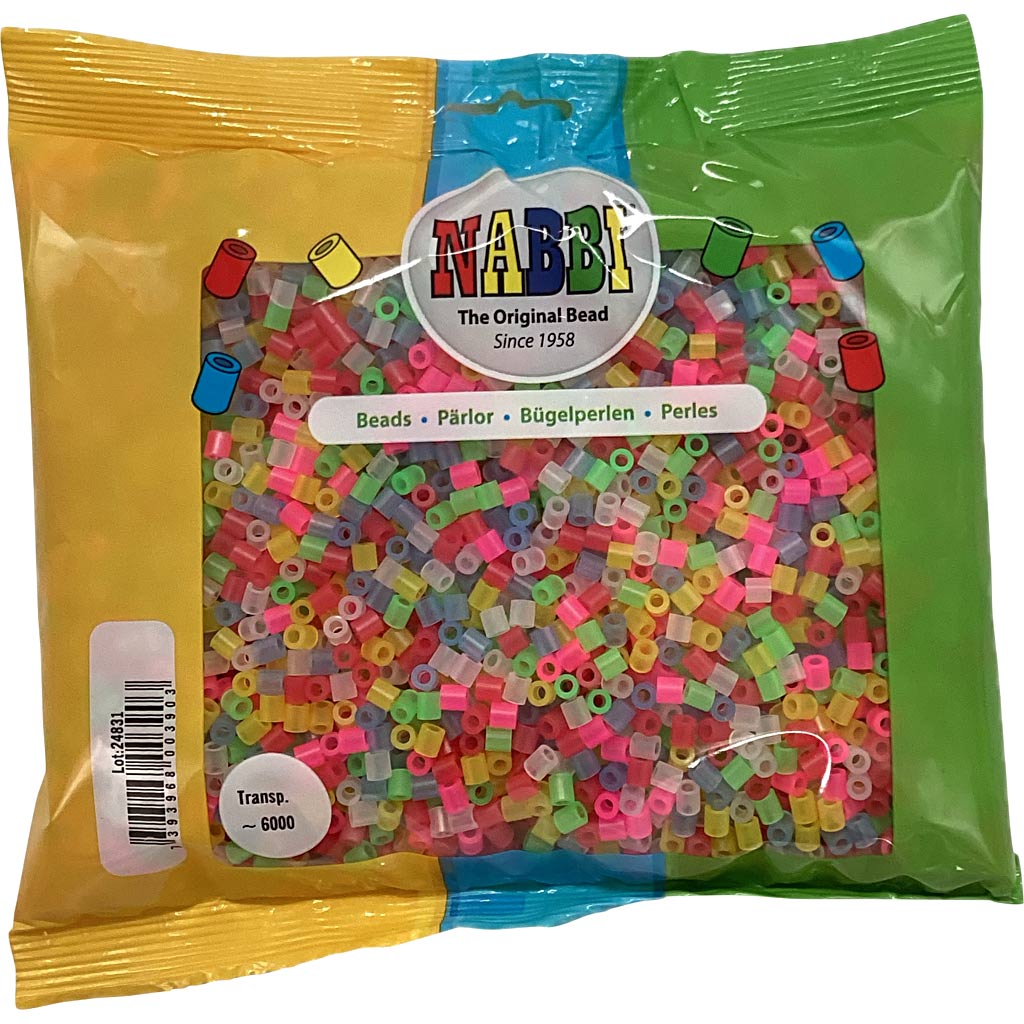 Rørperler, str. 5x5 mm, hulstr. 2,5 mm, medium, transperante farver, 6000 stk./ 1 pk.