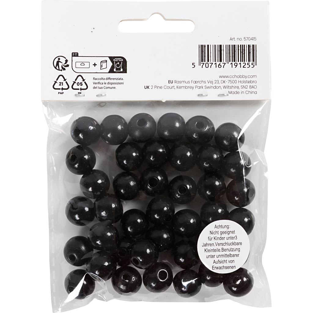 Træperler, diam. 12 mm, hulstr. 3 mm, ca. 40 stk., sort, 22 g/ 1 pk.