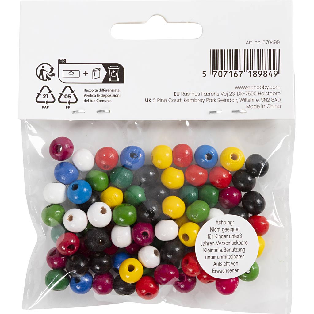 Træperlemix, diam. 8 mm, hulstr. 2 mm, ca. 80 stk., ass. farver, 15 g/ 1 pk.