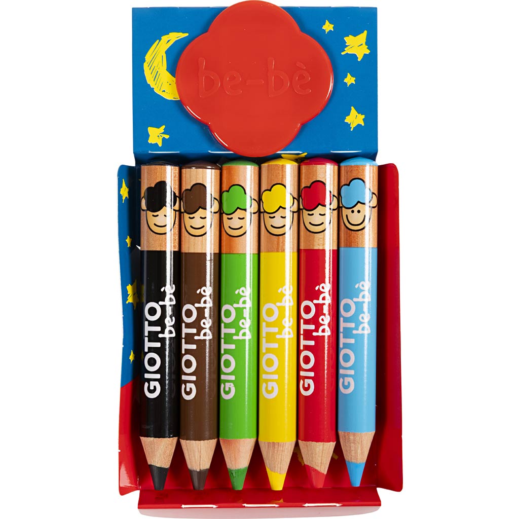 Korte, tykke jumbo farveblyanter i ekstra god kvalitet med fuldlimet mine fra Giotto be-bè inkl. Blyantspidser. Godkendt og udviklet til børn fra 2 år+
