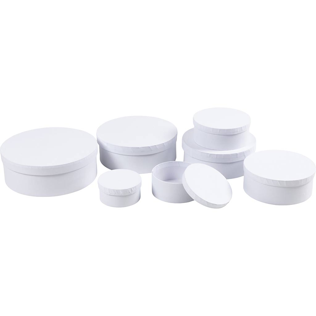 7-i-1 runde æsker, H: 4+4,5+5+5,5+6+6,5+7 cm, diam. 8,5+10,5+12,5+14,5+16,5+18,5+21,5 cm, hvid, 7 stk./ 1 sæt