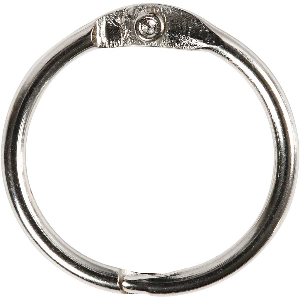 Metalring med enkel åbne- og lukkefunktion. Ringen anvendes til forskellige hobbyformål fx til samling af flere ark karton, pap eller andet til hjemmelavede bøger, mapper, fotosamlinger m.m